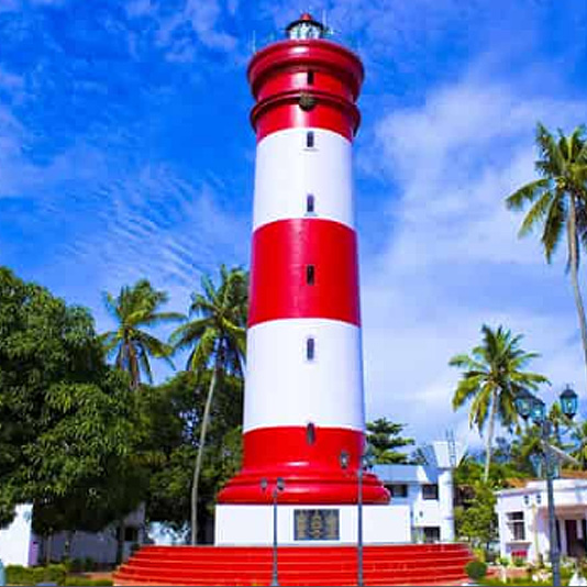 The Alappuzha Lighthouse is situated in the coastal town of Alappuzha, Kerala. It was built in 1862 and is a major tourist attraction. Visitors are allowed between 15:00 hours and 16:30 hours on every weekday at an admission fee of 50 rupees for Indian citizens and 100 rupees for foreigners.